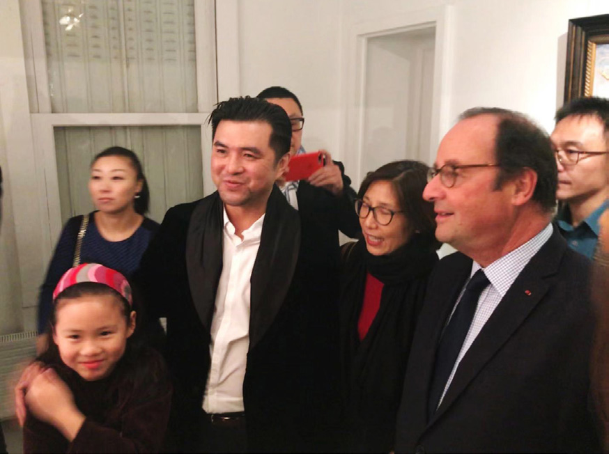 2018 10 26 日展至 10 30 日,由中国社会经济文化交流协会主办的“丹青传奇”艺术展在巴 黎 Espace Commines 艺术馆隆重举办,画家李晓玲邀请了好友法国前总统奥朗德出席开幕式并致辞。